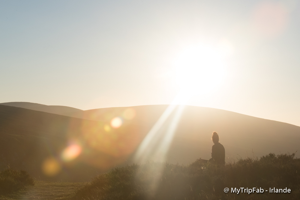 La vue est fantastique et nous profitons d’un superbe coucher de soleil sur la Luggala Mountain!