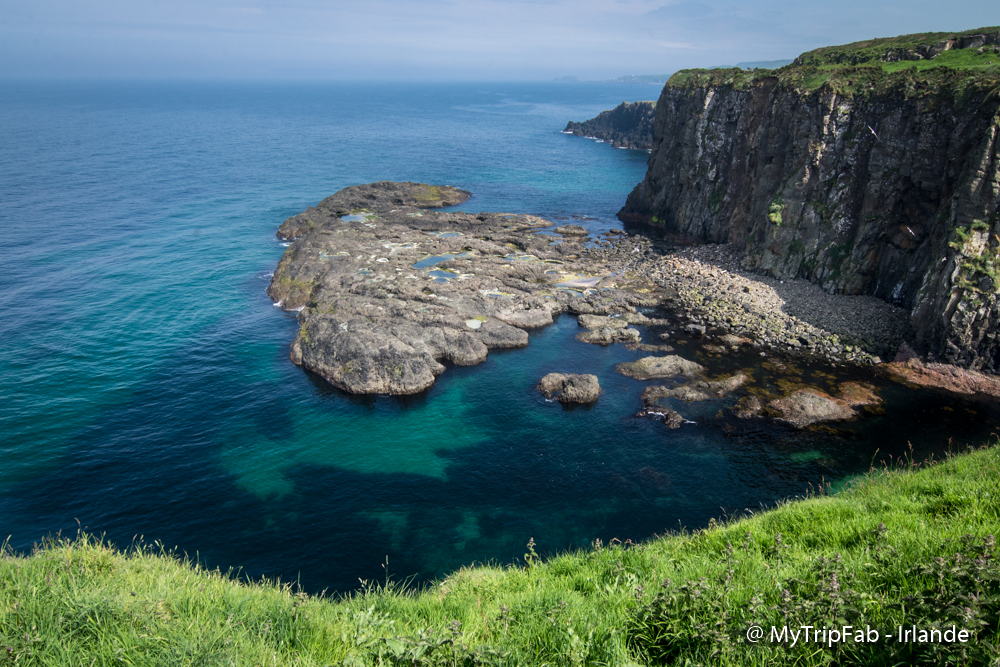 Avant de prendre la route pour la côte Ouest de l’Irlande, nous passons la matinée à arpenter les sentiers de la côte d’Antrim entre Ballycastle et Bushmills. Iles, rochers escarpés, récifs imposants, falaises… Autant dire que les points de vue ne manquent pas et le paysage est magnifique!